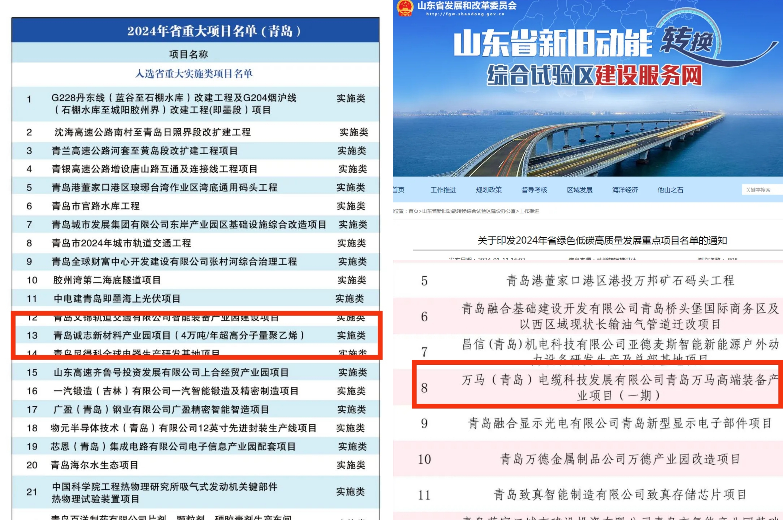 近日,山東省公布2024年重大項目名單和省綠色低碳高質量發展重點項目名單,青島誠志新材料產業園項目入選山東省2024年重大項目名單,萬馬高端裝備產業項目入選2024年山東省綠色低碳高質量發展重點項目名單。