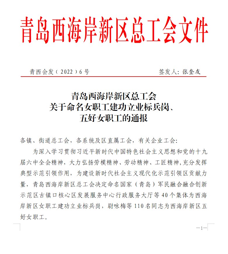 近日,青島西海岸新區(qū)女職工建功立業(yè)標(biāo)兵崗名單出爐,包含40個(gè)集體,海控集團(tuán)法務(wù)和風(fēng)控管理崗獲評(píng)該榮譽(yù)。
